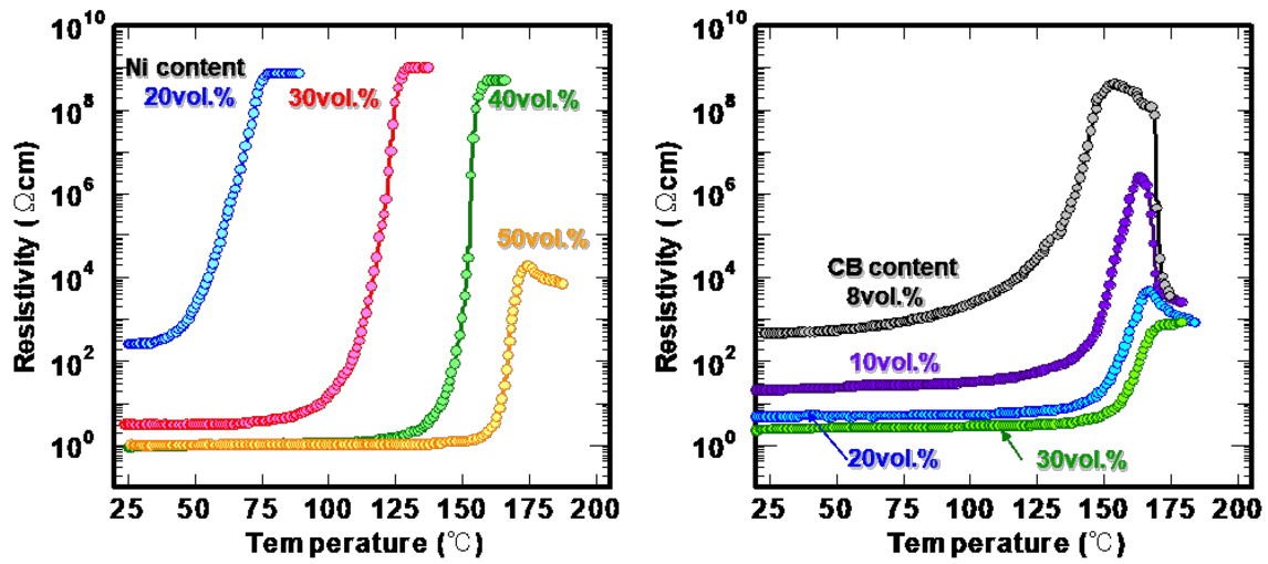 將金屬粉末、碳黑 (CB)、碳納米管 (CNT) 等導電填料充填於聚合物中製成的導電填料分散高分子複合材料,由於填料在複合材料中形成網絡連接導電通路,呈現特殊電氣特性。尤其是結晶性聚合物導電複合材料,隨溫度升高,其電阻率增加,呈現正溫度係數 (PTC: Positive Temperature Coefficient) 特性。具PTC特性的材料,可用於永久保險絲、溫度感測器、加熱器等。應用於永久保險絲時,需室溫電阻低、高溫電阻高,且電阻隨溫度增加的斜率要陡。為製備符合此需求的導電複合材料,解析PTC特性產生機制非常重要。